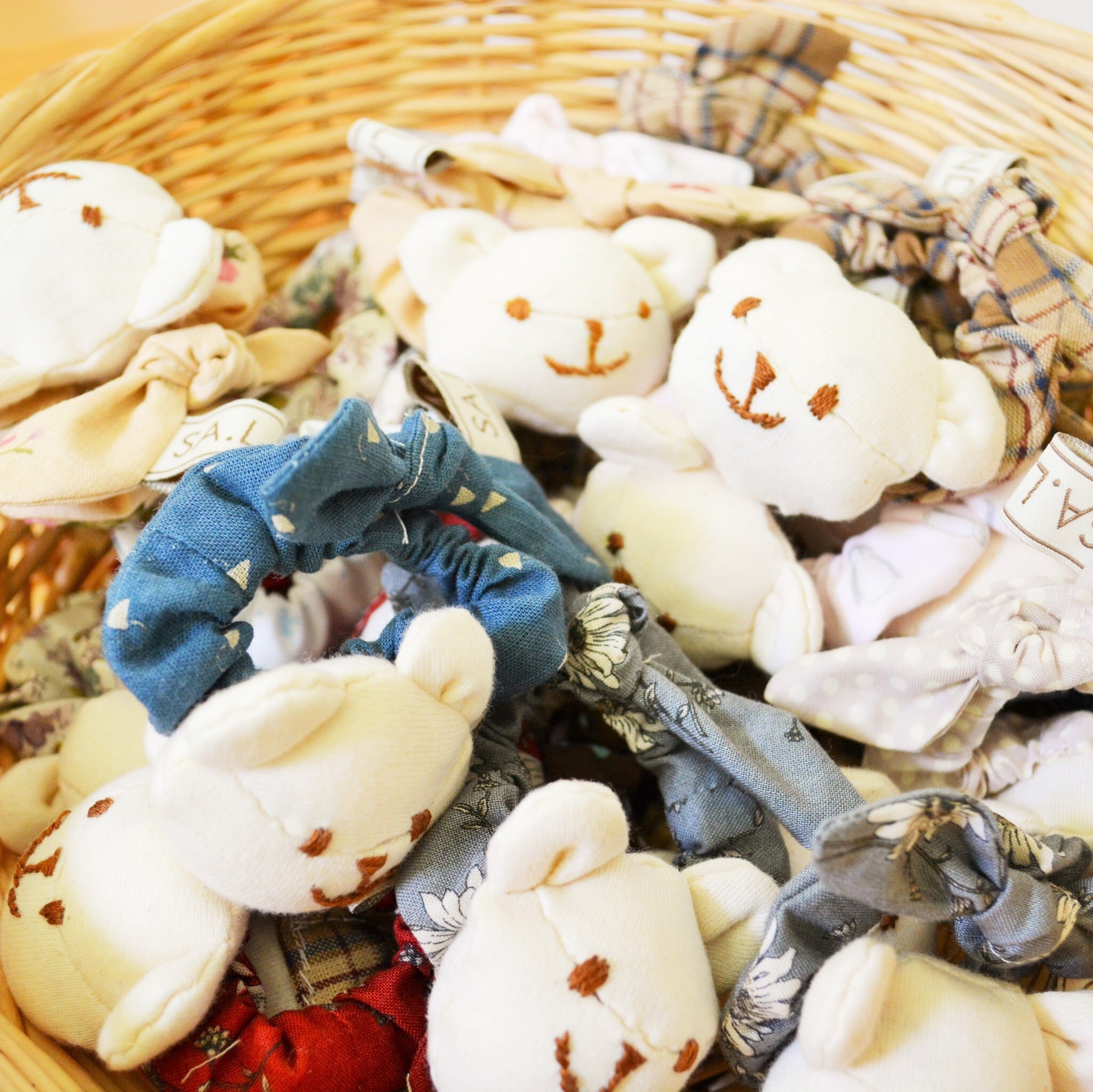 赤ちゃんの誤飲や怪我の無い様に手縫い刺繍などで安全な装飾にしています。