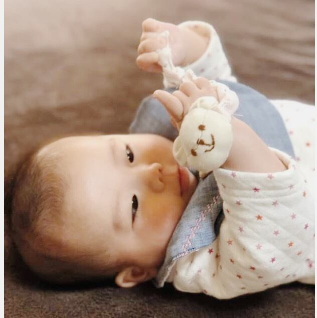 追視(動くものを目で追いかける事)が出来るようになる頃にも、ハンドリガード(自分の手を持ち上げて見つめる)する時期にも楽しんで頂けます。